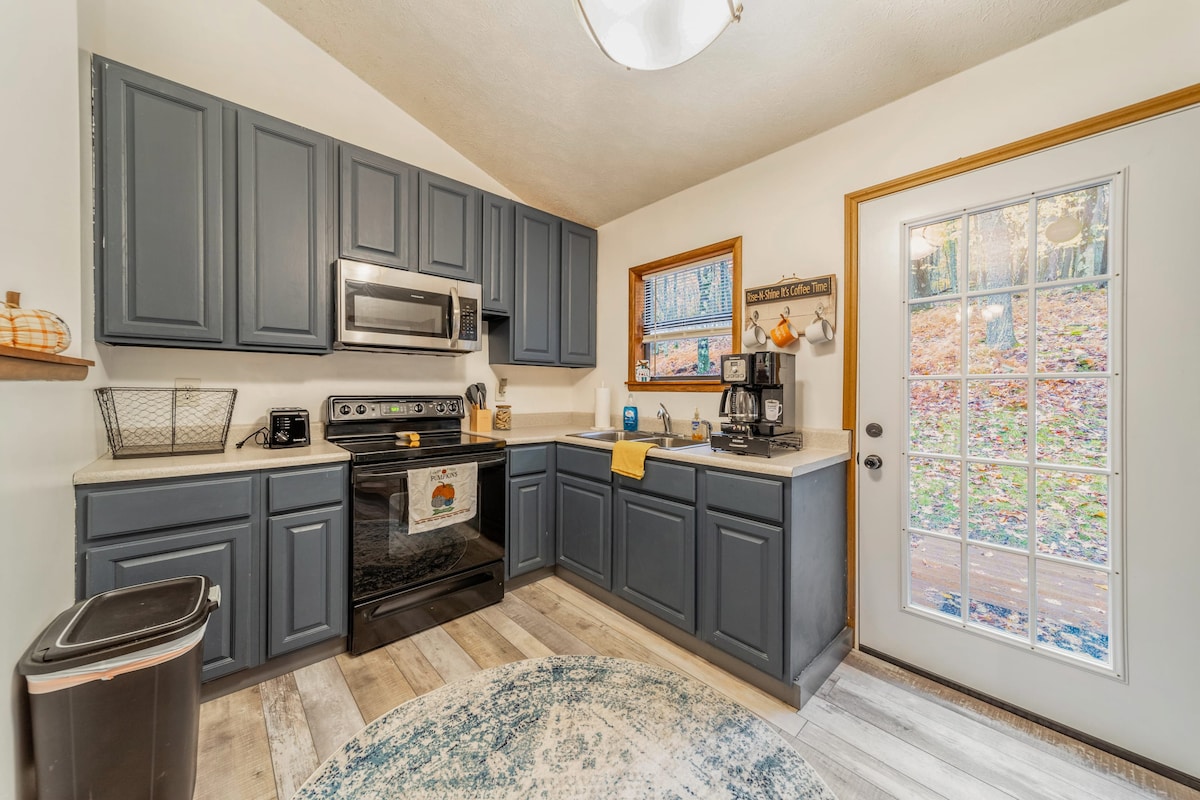 Woodhaven at Alpine Lake Resort 位於一條安靜的死胡同內,可以欣賞到湖泊和周圍樹林的美景。 這間房子可容納 10 人,非常適合兩個家庭或一群朋友入住。 再生穀倉木地板、2 個壁爐、大量的遊戲和拼圖、所有床鋪都配有羽絨被、高速 Wi-Fi、DirecTV、Sonos 音樂系統、可使用皮艇、獨木舟、2 個立式槳板、釣魚竿——應有盡有,讓你在山區享受寧靜又有趣的度假時光!