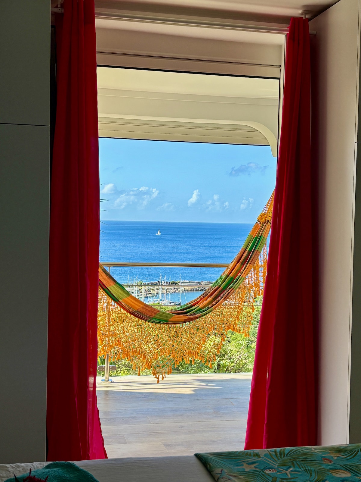 感謝您閱讀全文。 漂亮的克里奧爾木屋,三星級旅遊家具,建在天空和大海之間,可欣賞世界上最美麗的聖徒灣的美景。通過大樓梯進出。 不適合殘疾人士和 4 歲以下兒童入住。請注意,2 人的基本價格僅限使用一間房間,使用第二間房間需額外付費。