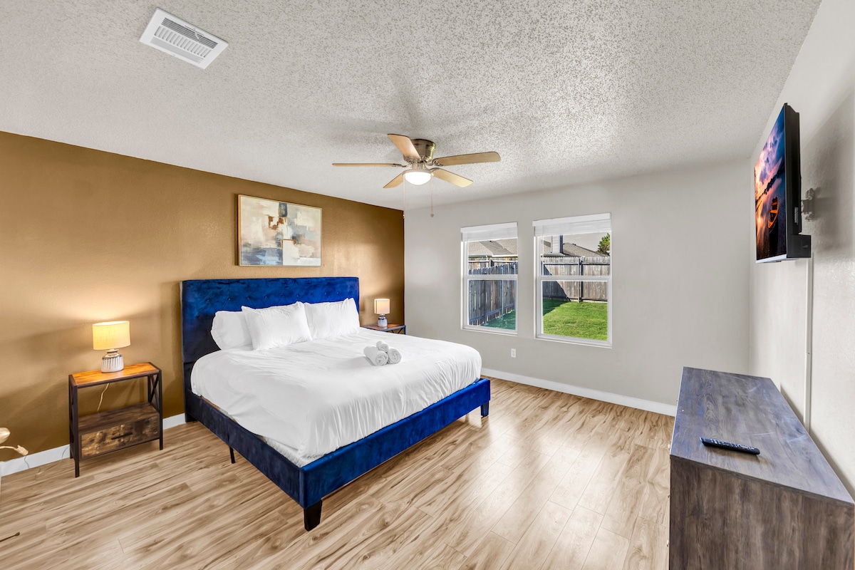 我們的房源經過精美的改造,距離 Winstar Casino 僅 7 分鐘,四間臥室均設有加大雙人床,兩間全功能浴室配有雙洗手台。 配有備品充足的廚房和舒適的咖啡吧。 享受令人難忘的設施,包括配有 180 個泡泡噴嘴的柔軟側熱水浴缸、戶外燒烤爐和沙包遊戲板。 享受火車經過的獨特聲音,為您的住宿增添魅力,每間臥室都有聲音機器,讓您舒適。