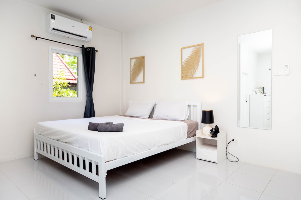 漂亮的新房子,步行15分鐘即可抵達海灘,有2間臥室和2間浴室。配備烹飪設施的全功能廚房、全尺寸冰箱、烤箱、餐廳、全功能客廳、沙發(如有需要,可變成2人床)WiFi 我們的房源距離普吉機場3分鐘車程,位於一個友好的泰國村莊,可以認識當地泰國人。步行即可抵達新鮮市場、餐廳、雜貨店。 您可以在沙灘上用餐 我們有私人遊船租車服務