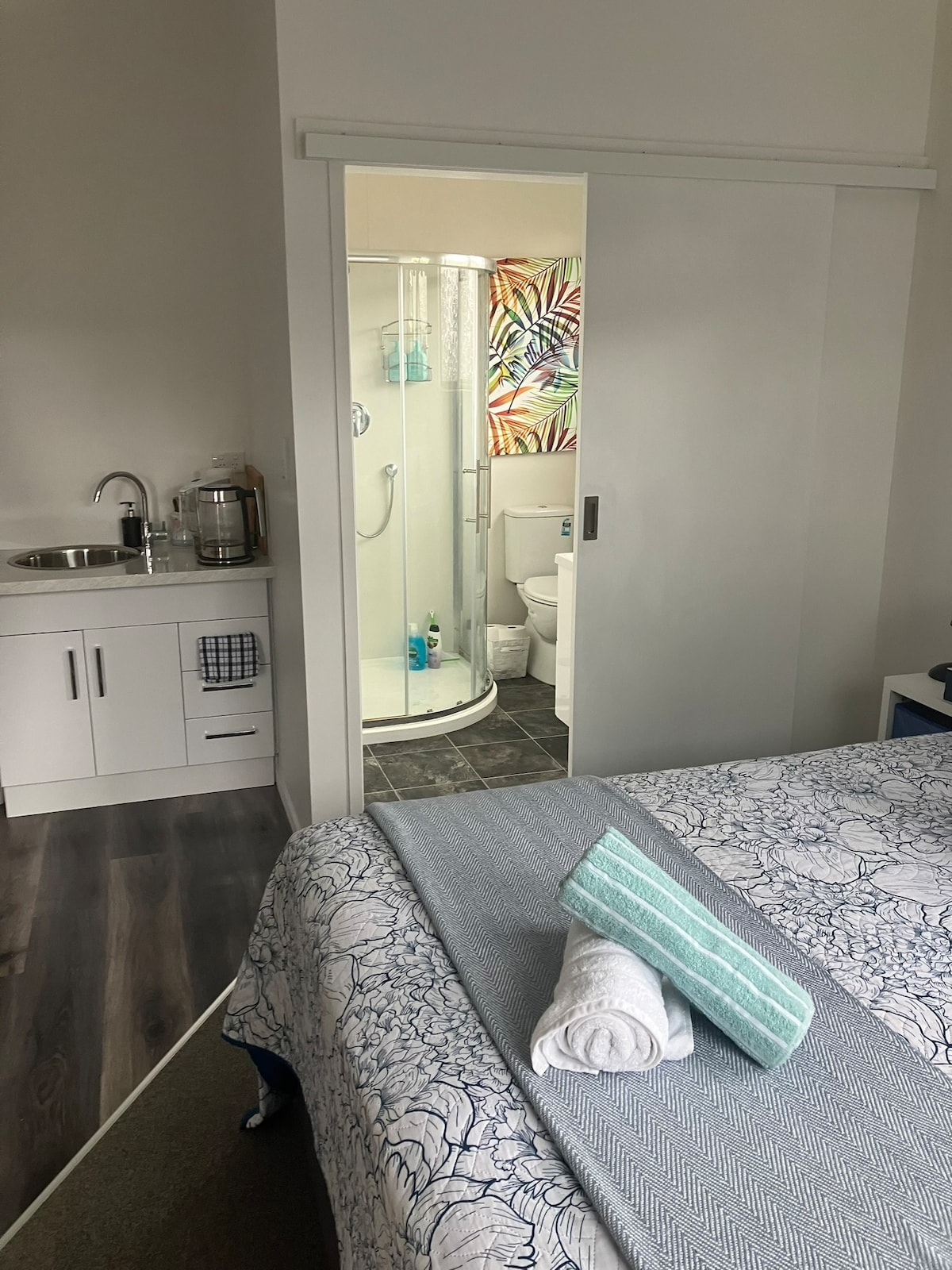 Te Puru :自給自足的客用套房。 可睡2人。1間臥室, 1間臥室, 這間一臥室客用套房位於風景優美的海岸公路上,泰晤士河以北10公里,完全獨立,提供街邊停車位。 包括可收看Netflix的電視、大冰箱/冰櫃、洗衣機、烘乾機、電磁爐、空氣炸鍋、電熱鍋、烤麵包機、微波爐、Weber瓦斯烤肉架、Nespresso咖啡機。 大床、電熱毯、暖氣和單人沙發床。 UV純淨水。網路:超高速光纖500。
