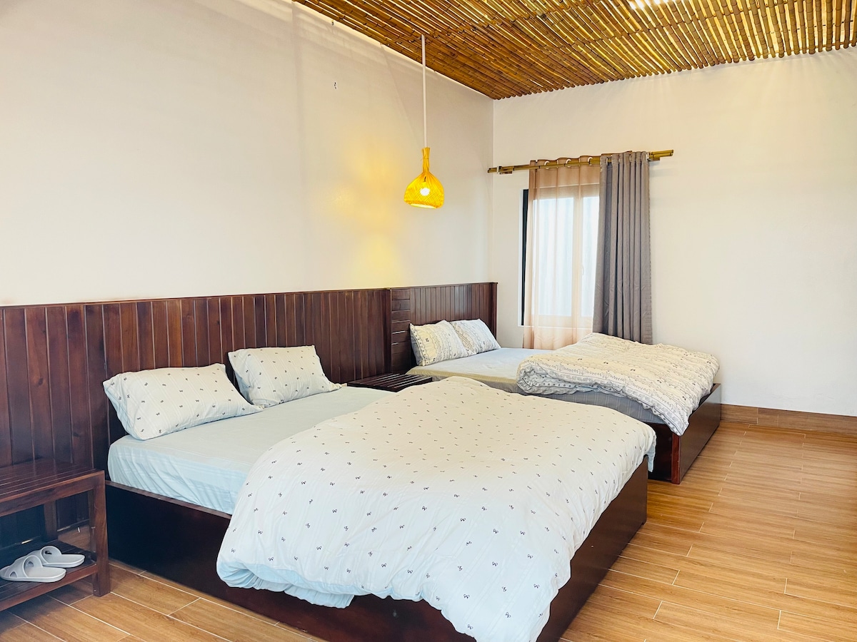 Yen Binh homestay -加大雙人牀臥室,可欣賞花園景觀
