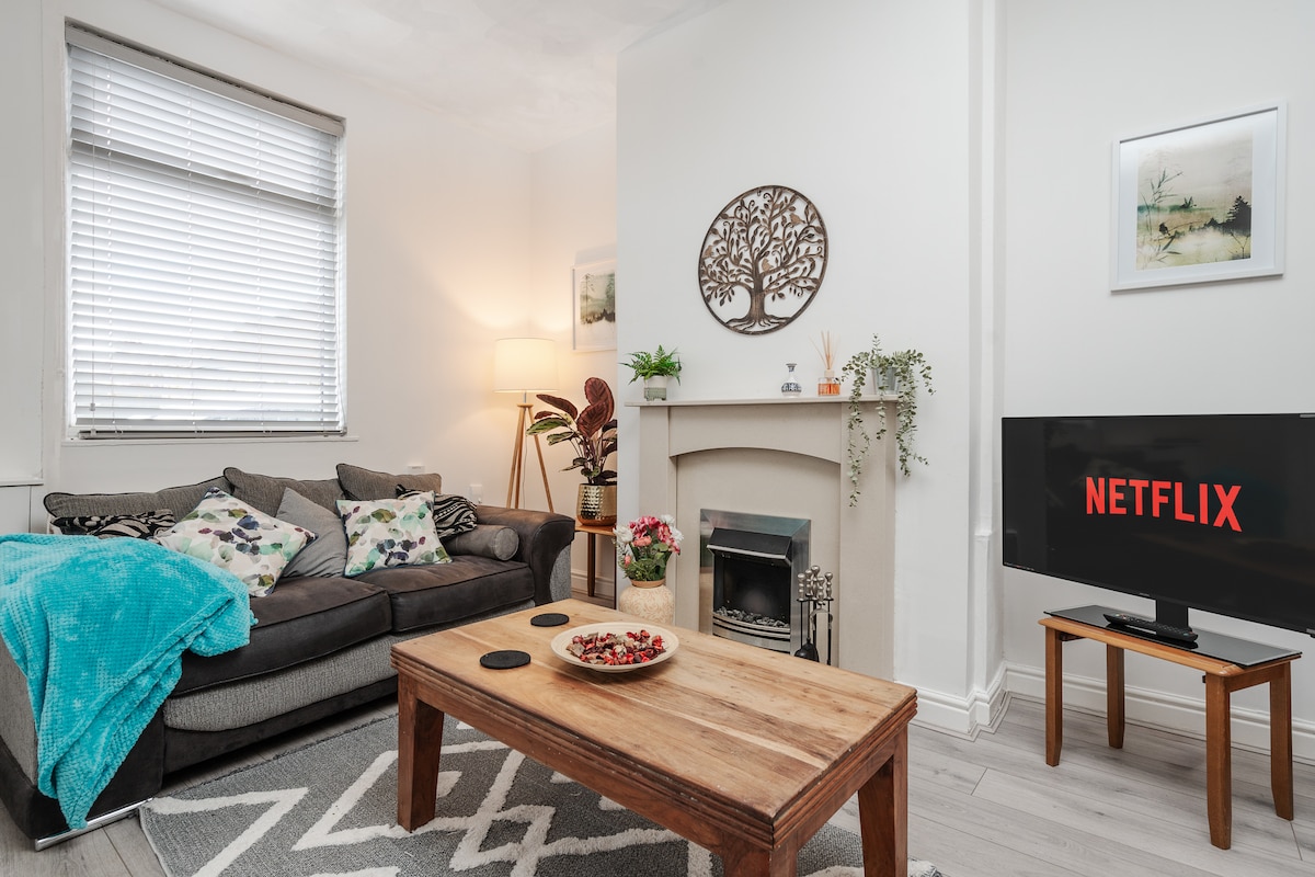 SEPTEMBER SPECIAL: 20% DISCOUNT 2 WEEKS OR MORE. IDEAL FOR CONTRACTORS. This traditional terraced house features a spacious lounge, a master bedroom (king bed or 2 singles), a comfortable single room, and a double sofa bed in the lounge. Enjoy Superfast Broadband plus Netflix, Prime and iPlayer, fully equipped kitchen and luxurious 4 piece bathroom. In addition, the close proximity of motorway networks plus Liverpool and Manchester make it an ideal base whether you're exploring or commuting!