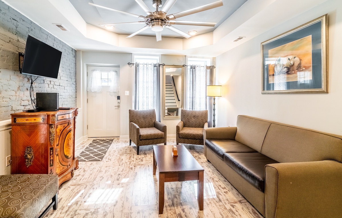 步入您迷人的 3 臥室連棟房屋,坐落在 Fells Point 的中心!探索迷人的鵝卵石街道,發現獨特的商店,享受美味的美食,或享受熱鬧的夜晚。 我們的房源距離海濱僅一個街區,可輕鬆前往巴爾的摩的熱門景點,包括內港和東港。 最多可供 8 位房客入住,享受我們的舒適家具、設備齊全的廚房和配有火坑和烤架的大型戶外空間。