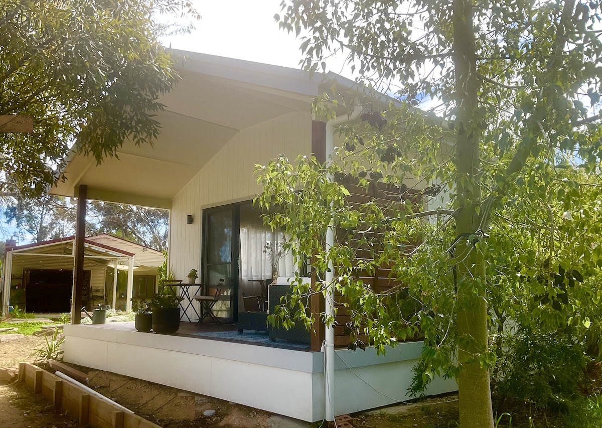 The Writer 's Studio 完全獨立,適合一或兩位房客入住。 它有一張非常舒適且堅固的充氣雙人床。 遠離主屋,它通向一個小果園。 這是一個安靜的綠洲,您可以在探索巴羅薩(Barossa)的所有景點之間享受。 閣樓有用餐區和休息區,以及閱讀角落。這裡有一張沙發,如有需要,可為兒童打開。 或者,我們可以在閣樓設置另一張充氣床,可通過閣樓梯子進入。