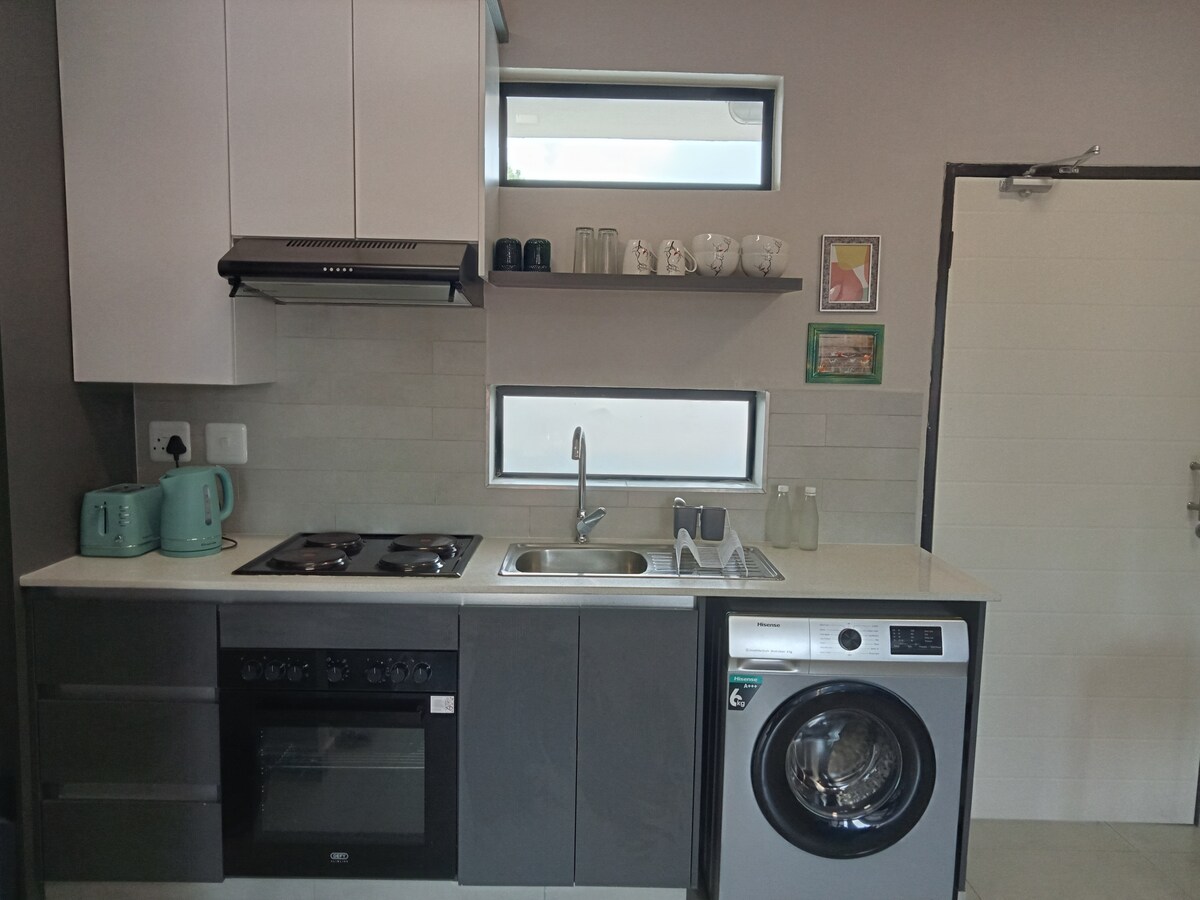 比勒陀利亞Lynnwood的寬敞單臥室公寓,配有大型露天室外區域。 厭倦了脫落或沒有水,這裡絕對是理想地點。 我們有太陽能、電池備用電池和燃氣爐,讓您在例行階段和離網水供應期間繼續前進。 可輕鬆前往N1 ,靠近商店、餐廳、商業公園和大學。 廚房設備齊全、全功能浴室、學習區、獨立休息室和獨立休息室,並有自己的安全停車位。 配備免費WiFi和全套DSTV。