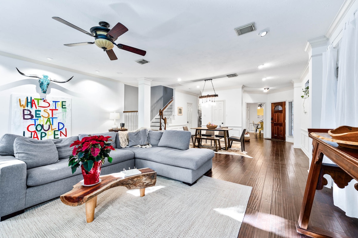 乾淨的房源、美麗的裝飾、原創藝術品、有門禁的停車場/電動車、藝術區中心位置、快速WiFi。 在休斯頓市中心附近的中心位置享受奢華舒適。 •開車 5 分鐘即可抵達市中心 • 距離Galleria 10分鐘 • 15 分鐘到醫療區 • 門禁車道 •配有烹飪工具的全套廚房 •嬰兒床/高腳椅 • 1 Gb/s 快速網路 • YouTube TV,配有ESPN、NFL Network、CNN、Univision •客廳配有 65 吋電視,每個房間配有一臺電視 • 免費洗漱用品 • 雨淋式「水療浴室」
