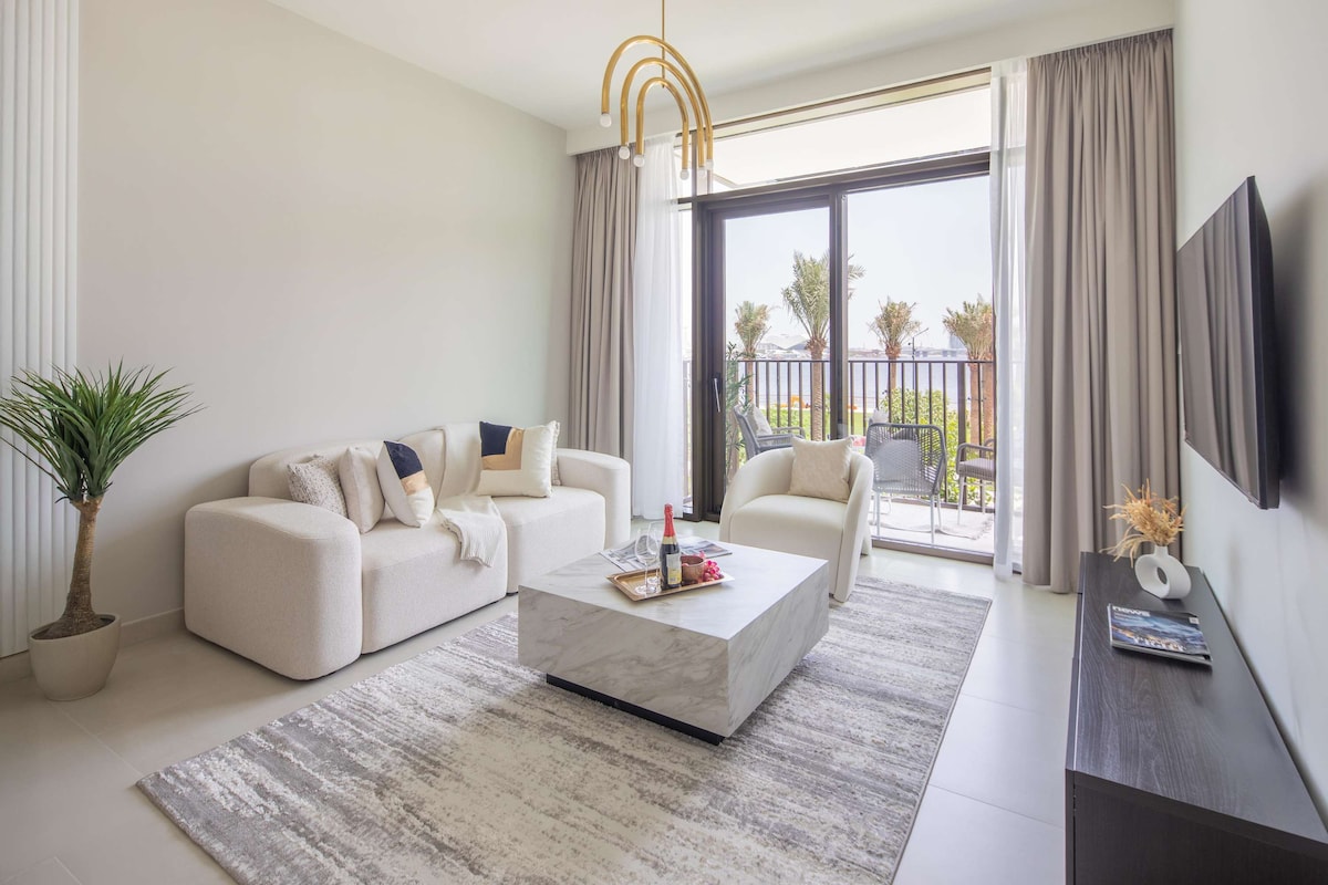 這間豪華的單臥室公寓位於杜拜溪港( Dubai Creek Harbour )的The Grand ,提供舒適的生活,提供您所需的一切設施。 可免費使用溫水泳池、健身房和免費停車位。 客廳配有舒適的沙發和高清電視,配有Prime Video和AppleTV +供您使用! 陽臺可欣賞美麗的景色。 公寓設備齊全,您可能需要的一切物品,我們很樂意提供您住宿期間所需的一切物品!