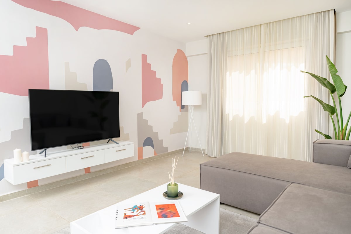 我們的公寓非常簡單,但您可以獲得所需的一切,讓您的假期輕鬆而獨特 - WiFi -電視螢幕 -空調 -沙發 位置 -非常安靜的區域,周圍有各式商店和餐廳 -輕鬆搭乘當地交通工具前往目的地 大樓 -夜間保安 -左轉2次 -每日清潔 主臥室 - 1 張大床 160 公分 - 電視 -窗戶 -衣櫃 次要房間 - 120 公分床 -120 公分雙層床 -陽台 -書桌 -空調 -衣櫃