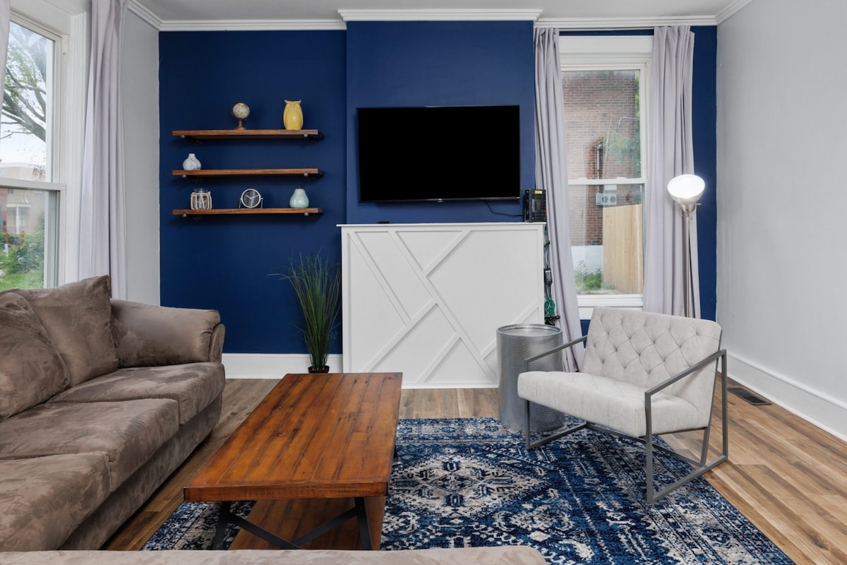 入住這間位處中心地段的房源,享受這裡的時尚品味。在漫長的工作日之後,溫暖的色彩和良好的氛圍提供了一個度假勝地。在超級舒適的記憶泡綿床墊、配有大螢幕的舒適沙發和休閒廚房上為您的電池充電,讓房客盡情娛樂。如果烹飪是您的禪宗,櫥櫃裡有您設計下一餐所需的一切。 The Grove靠近森林公園、BJC、Wash-U、SLU和中央西端、植物園和塔樓格羅夫公園。