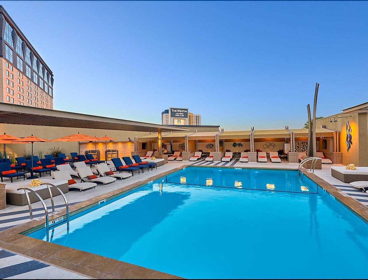 在距離拉斯維加斯中心大道僅1個街區的家庭和商務友好度假村享受我們的現代豪華套房。Sphere、Caesars、Venetian Expo和許多會議中心只是您可以在附近參觀的景點。 套房配備您可能需要的一切,同時提供所有度假村設施。 ✔ 露臺(一樓)/陽臺(二樓和三樓) ✔ 壁爐 ✔ 2 張特大床和 1 張沙發床 ✔ 5個泳池,配有噴水功能 ✔ 活動中心 ✔ 2間健身房 ✔ 餐廳和酒吧 ✔ 迷你超市