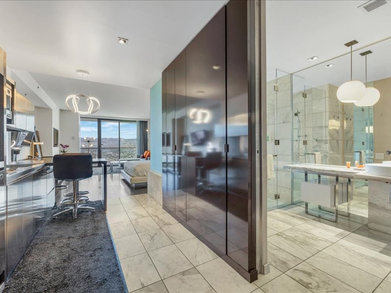 這間 870 平方英尺的 MGM Signature 按摩浴缸公寓可欣賞山景和大道景觀。 這間 1 房 2 衛的角落單位曾經屬於一位電影大亨,如今則是作家和格鬥家的居所。 因此,這是一個經過精心設計的房源。 陽臺位於頂級高爾夫球場和Wet Republic上方19樓;獨特的WiFi系統;電動BR電視,可降低以欣賞城市夜空;客廳電視配有Roku、Fire Stick和Signature TV ;主浴室配有手持魔杖的雨淋式淋浴間等。