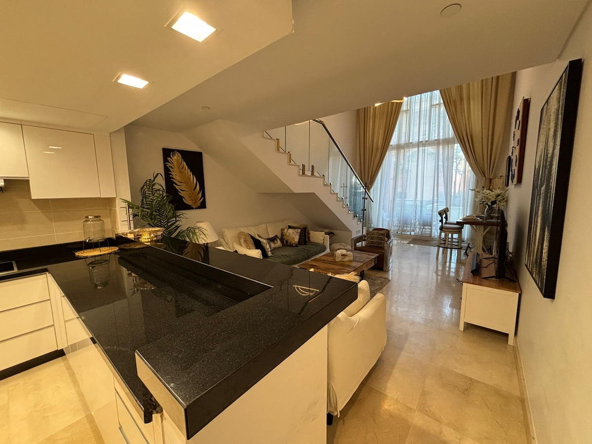 This Luxurious Loft Apartment at Floor of all amenities(First Floor) direct access to to the beach, offers a terrace with city & sea views, as well as a year-round outdoor pool, fitness center and sauna. This beachfront apt offers access to a pool table, free private parking. The air-conditioned apartment consists of 1 bedroom, 1 living room, fully equipped kitchen with fridge & coffee machine, and 2 bathrooms with a bidet and a shower. 2 flat-screen TV in Bedroom and in Living are available.