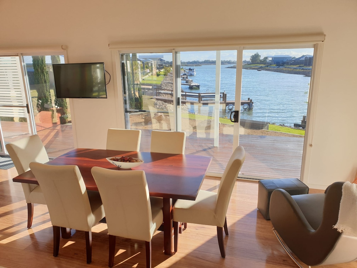 正在尋找墨累河的住宿,可前往河邊,並有自己的碼頭可以停放您的船?那麼這裡絕對是理想地點!房子有4間臥室,均配有雙人床和56英寸電視,可使用Netflix、中央暖氣和冷氣。有2間浴室和一個起居區,配有休息室、餐廳和廚房,以及一個配有瓦斯烤肉的戶外區域。