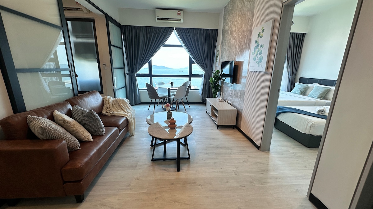 位於中央商業區和海灣旁的新公寓。在我們的高層單位享受四周環繞島嶼的海景。步行即可抵達碼頭,方便跳島;國際會議中心、(免稅)Jesselton商場和Suria Sabah商場就在附近。 我們的家庭套房很乾淨,經常消毒和提供空氣淨化器。適合家庭入住,也適合情侶和商務旅行。