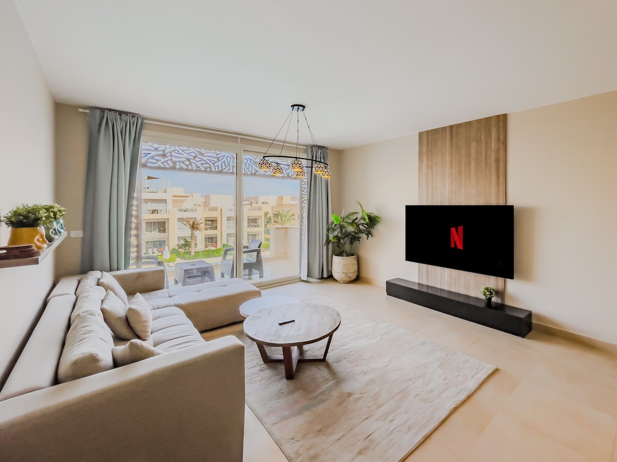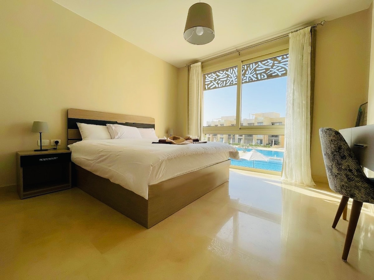 舒適的1間臥室公寓,位於El Gouna市中心( Mangroovy -唯一的海濱大樓) ,可欣賞泳池景觀和免費海灘。 這是一套一樓公寓,設備齊全的廚房、2間浴室和客廳。有明亮舒適的戶外露臺,非常適合早晨喝咖啡或深夜放鬆。 它還有智慧電視、洗衣機、Nespresso 咖啡機、水壺和微波爐。 公寓非常適合情侶和小家庭入住。
