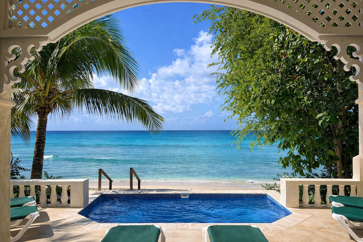 The most beautiful sunset views on the island!!! Coralita is a stunning waterfront apartment on the prestigious west coast of Barbados. Designed by Ian Morrison and inspired by classic Greek design, this apartment is unique and perfectly situated. Wake up to the sound of the ocean and sea turtles swimming steps from your door. Centrally located, the property is 2 minutes from the grocery store, 10 minutes from Holetown, 25 minutes to Bathsheba, and 5 minutes from the prestigious Sandy Lane.