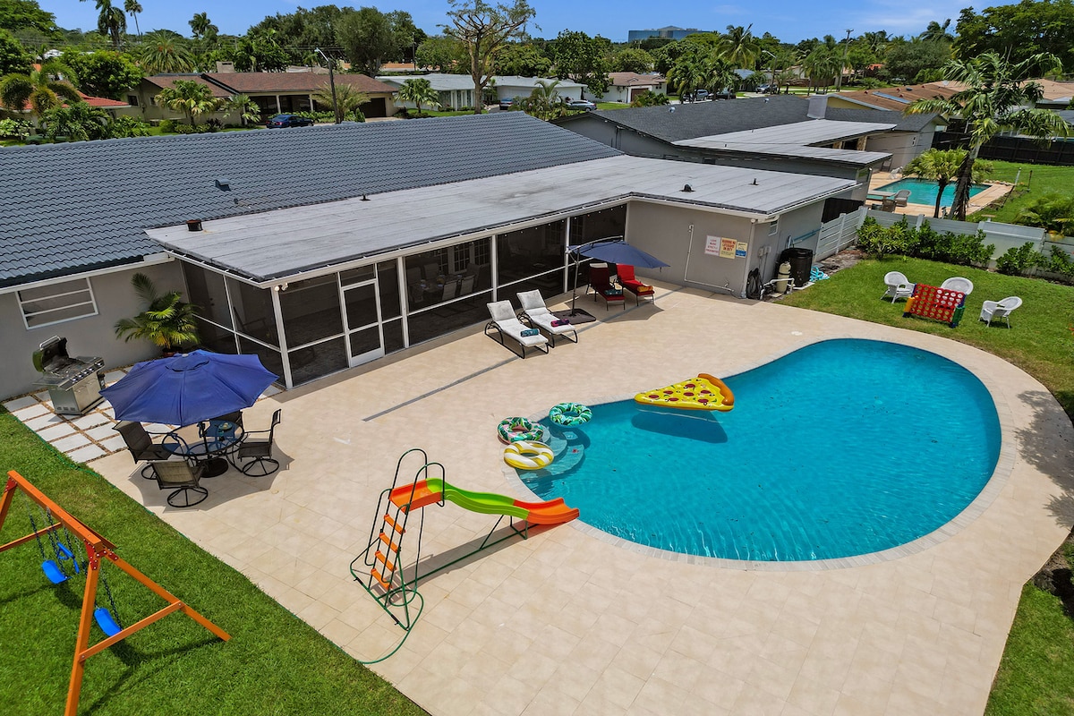 豪華的湖畔泳池房源,全新翻修的現代設計,位置方便,距離Hardrock Hotel & Casino和Ftl機場僅幾分鐘路程。 足夠寬敞,可容納全家入住。私密且安靜。坐在泳池旁,欣賞佛羅里達州的美麗日落,或向東15分鐘即可抵達著名的勞德代爾堡海灘。 享受火坑,點燃烤肉,享受泳池邊的日光浴。Publix 距離不到 1 分鐘路程。 正在為您的旅程尋找租車嗎?立即發送訊息給我,了解更多資訊!