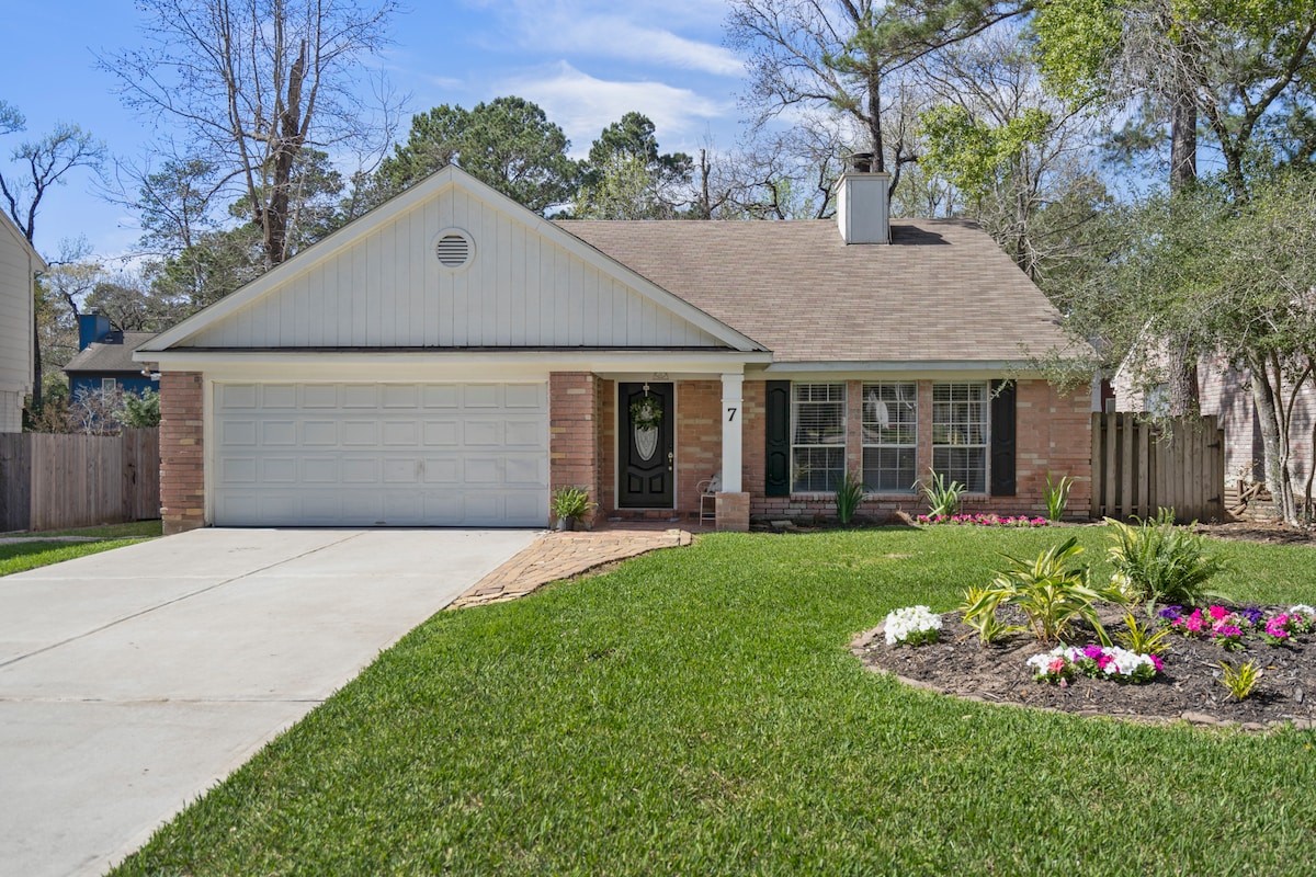 入住這間獨一無二的度假屋,距離伍德蘭(The Woodlands)僅5分鐘路程,毗鄰Jones State Forest。步行、騎自行車或騎馬在森林小徑上行走1/2英里。 晚上,你會凝視泳池邊閃爍的星座,或在我們的按摩椅或噴射式花園浴缸中放鬆身心。 參加附近的Cynthia Woods Mitchell Pavilion的戶外音樂會,這是美國最熱門的圓形劇場之一。 我們距離The Woodlands醫療中心5分鐘,距離The Woodlands購物中心10分鐘,您可以在那裡盡情購物。