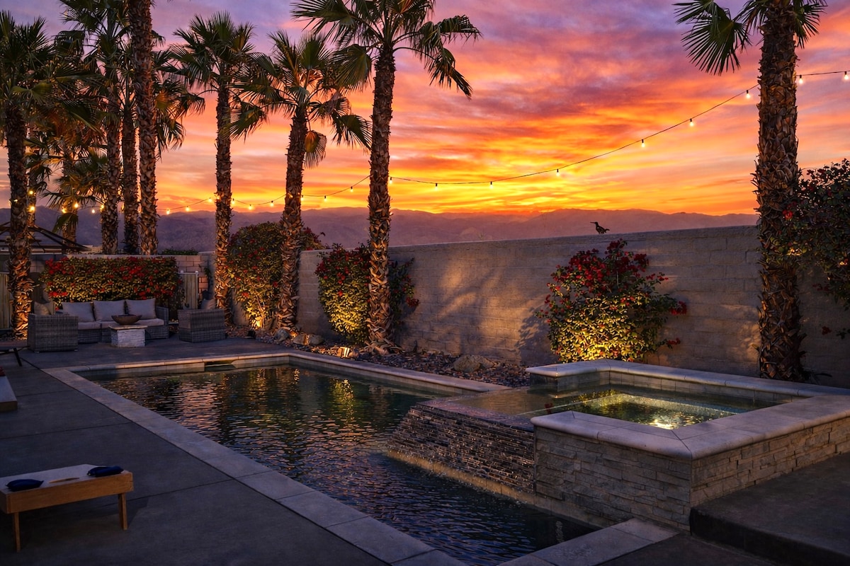 這間優質的房源空間寬敞,可以帶著全家老小一同入住。在漂流河中玩水,在附近的高爾夫球場打高爾夫,或是去沙漠探險。或者在泳池旁曬曬日光浴,預訂您應得的現場水療。這裡是放鬆身心、無所事事、與親友一起享受沙漠陽光的好地方。使用娛樂中心玩街機和遊戲、打籃球、網球、匹克球、 烤肉,或探索棕櫚泉夜生活。
