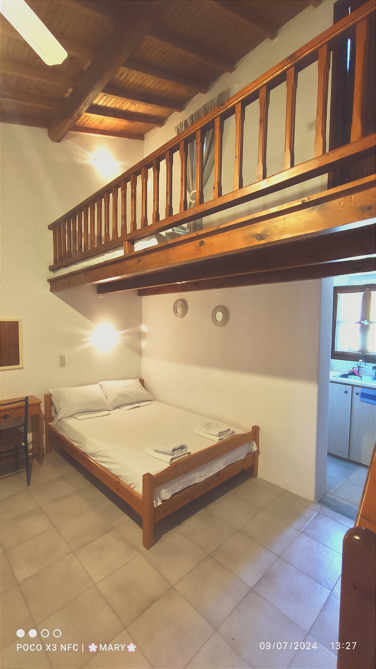 工作室形狀極佳,設備齊全且品味高雅,同時可欣賞到Glarokavos海灣的美景。它包括臥室、廚房、浴室、私人露臺和燒烤。 非常適合尋找高品質假期的情侶! 長期租賃的特別價格! 請隨時詢問!
