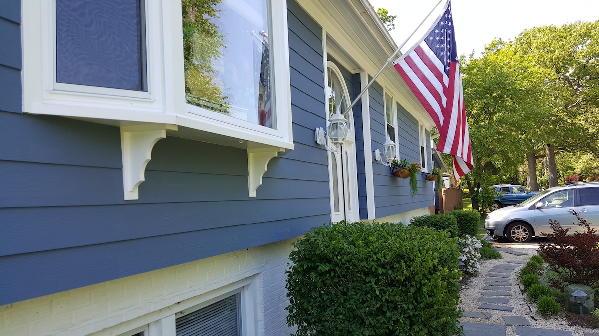 位於有門禁的私人莊園上,完全翻新的客用小屋。房源距離東港、安納波利斯市中心和海軍學院僅幾分鐘路程。(距離大門4.7英里)。我們使用私人水井,但我們安裝了最先進的水軟化器、過濾系統和藍光細菌殺菌器。 房源和庭院適合兒童入住,提供充足的戶外遊戲空間和多功能運動場。房源的第三間臥室有一張全尺寸嬰兒床、嬰兒門和一張雙人床。
