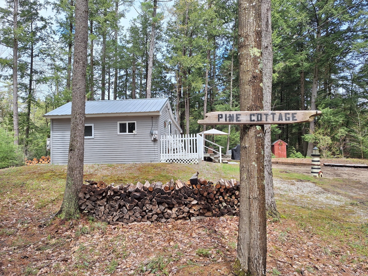 翻新1967年結節松小屋,步行即可抵達湖泊,並享有湖泊權利。距離湖畔400英尺。您可以游泳,免費停泊您的船,釣魚、滑水或只是巡遊 湯普森湖。14英里,是緬因州最乾淨的湖泊之一。 6輛自行車、 2艘皮艇、2-16英尺獨木舟、14英尺划艇和一艘槳板船、釣具、木柴可供房客免費使用。小屋提供丙烷和木炭燒烤。 沒有WiFi。