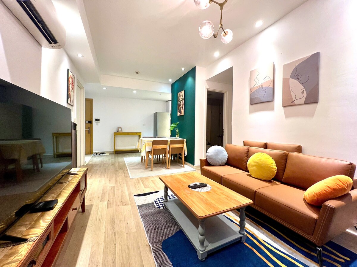 - 在全新的公寓中享受奢华体验,拥有两间卧室、两间浴室以及两台65英寸4K电视,安静宜人。 - 高端设计,开放式布局和现代化、设施齐全的厨房。 - 大窗户带来充足的自然光线;公寓保养良好、干净整洁、风格优雅,是放松和娱乐的理想空间。 - 这是家庭和朋友团体在美丽的胡志明市度假的完美地点。