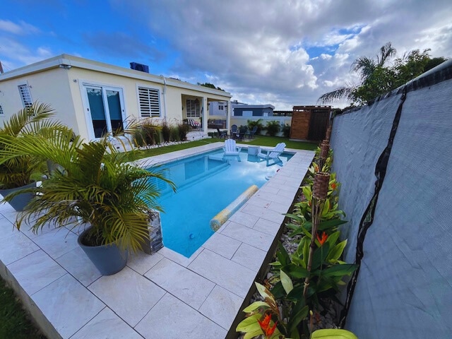 Yes, the pool is private! Located cliff-side above Mar Chiquita beach, you will enjoy amazing views, exquisite sunrises and sunsets, peaceful sounds of the ocean and a refreshing saltwater pool. Afternoon or evening BBQs are easy and fun in the outdoor kitchen area, as well as relaxing in the comfortable hammocks.