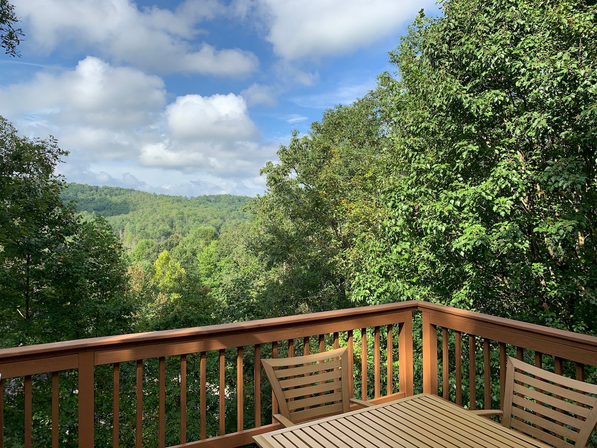 完美的情侶度假勝地。 美麗的客用住房,可欣賞遠處山景。 拱形天花板,外面的露台可俯瞰七座山脈。區域有小鋪面道路蜿蜒穿過森林。 非常適合您的日常散步。 社區與Warwoman野生動物管理區接壤。距離市中心2英里,位於安靜的山頂社區。 非常適合徒步旅行、釣魚、觀鳥、划船、泛舟、購物、用餐和放鬆身心。