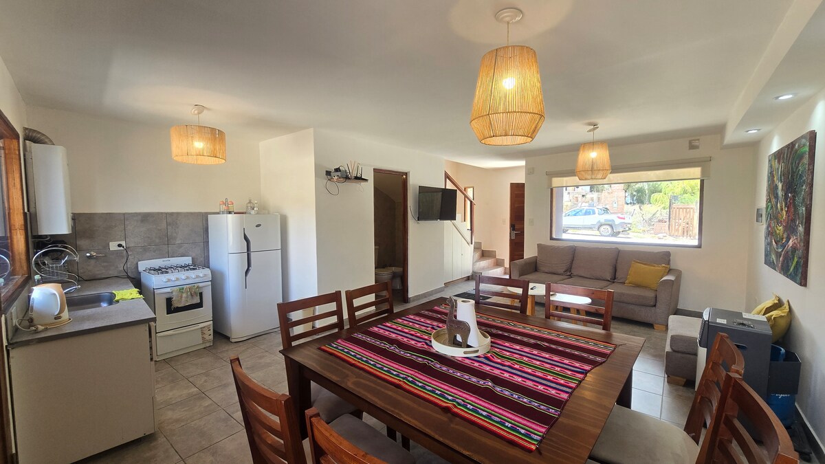 對於希望在鄉村和安靜地區感到舒適的人來說,這是一個理想的房源。 房源距離Tilcara村3.5公裏。 空間有夾層、一個房間(均有兩張牀)、2間浴室、配有兩張扶手椅和電視的客廳(其中一張是牀)、一個寬敞且設備齊全的廚房。 室外區域有烤架、土烤箱和室外餐桌。 房子和周圍環境裡住著一隻可愛的貓Capitán。