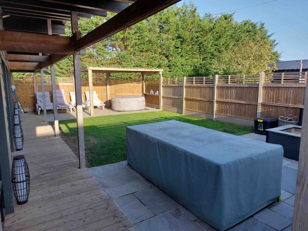 大村莊內的獨立式時尚附屬建築,有四個酒吧/餐廳,外面有漂亮的用餐區域。 設備精良的廚房,配有洗衣機和休息區,配有瓦斯原木燃燒器。戶外空間,可享用陽光明媚的早餐/晚上喝酒。 步行即可抵達主線車站(倫敦50分鐘)和起伏的鄉村。開車短暫即可抵達野生或傳統海濱、動物園和歷史遺址。房東住在鄰近的房子裡。自助入住和無鑰匙入口。