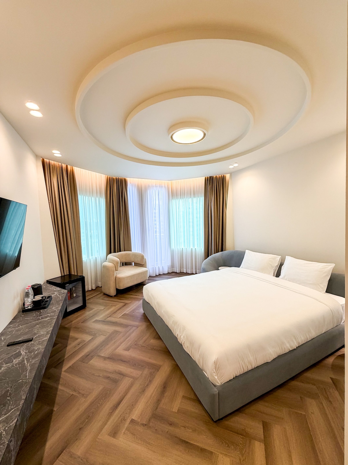 Stay in a chic boutique room in Blloku, Tirana’s vibrant center. Enjoy premium linens for ultimate comfort and complimentary coffee, tea, and bottled water. The room features fast Wi-Fi, a smart TV, and all essentials for a comfortable stay. Self-check-in makes your arrival hassle-free. Surrounded by trendy cafes, restaurants, and nightlife, you’ll experience the best of the city. Whether for business or leisure, this stylish space offers everything you need for a perfect stay.