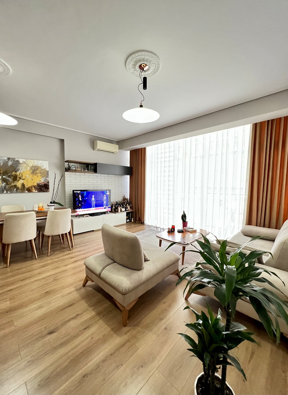 68 M2 apartment. 2 High-Quality A.C, Bedroom&Living Room. Fiber Optic Business WIFI 350 MBPS/50 Smart tv youtube&Netflix Double glazed windows soundproofing and thermal insulated windows Big Balcony (Smoking Friendly) Bedroom with A.C and queen bed Washing Machine. One sofa bed in the living room. 1 Queen bed, One sofa bed We provide professional cleaning our highest priority Supermarkets, Restaurants, Barbier, Bakery and Gym 2 minutes on foot. Coffee,Tea,Oil, Sugar&Spices.