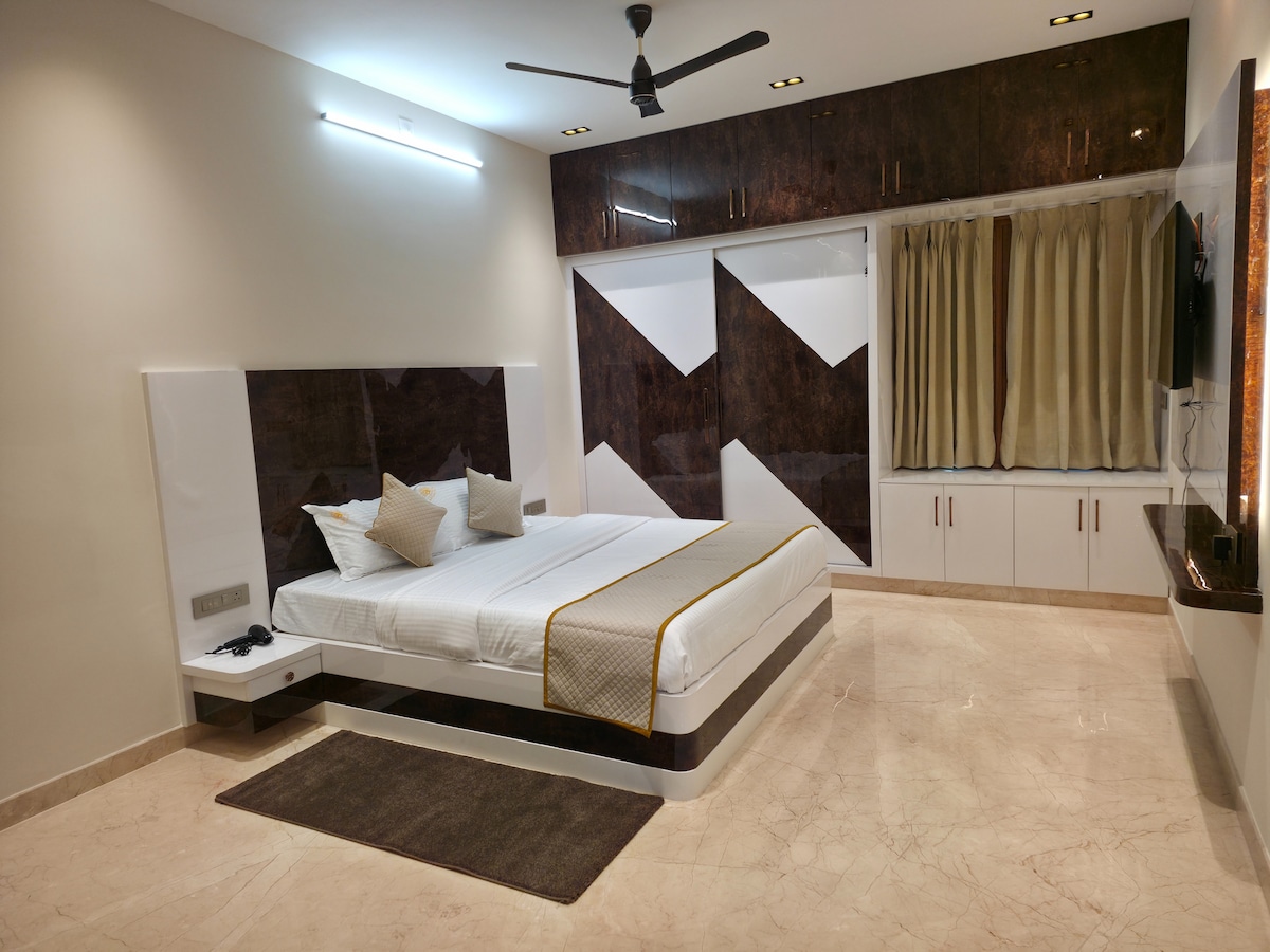 THS Suites offers premium 2BHK luxury stays with breathtaking Tirumala hill views in Tirupati’s most elite location, surrounded by Taj, Marriott & ITC Fortune. Just minutes from Alipiri Flyover & Tiruchanur Temple. Elegant teakwood furniture, Wakefit memory-foam mattresses, luxury linens, full kitchenette & serene turquoise décor. 24/7 security & concierge support. A perfect blend of comfort, privacy & prime access.