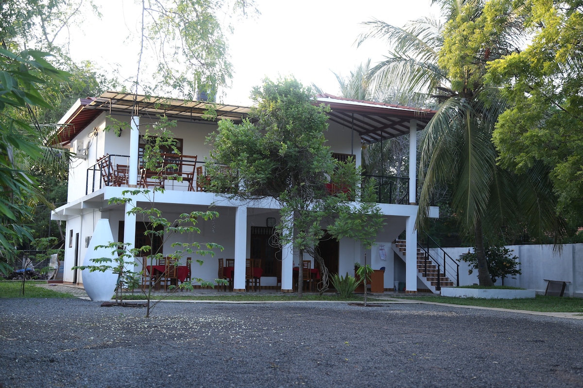 此房源非常適合追求隱私和放鬆的自然愛好者。別墅距離亞拉國家公園入口僅14公裏( 20分鐘) ,最多可容納14位房客。 面向遊泳池的2間獨立房間配有空調、有線電視、保險箱和套房馬桶。 上樓宿舍可容納10位房客,提供獨立共用馬桶/淋浴設備。房客可以享用私人屋頂露臺、遊泳池、大花園,並嘗試我們的當地美食。