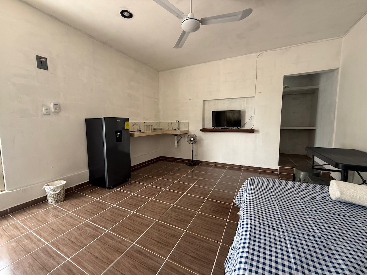 單間公寓位於Tizimín Yucatán ,舒適,地理位置極佳,遠離人羣放鬆......在我們的前露臺上,您可以享受新鮮的空氣和自然光線。 距離El Cuyo、Río Lagartos和San Felipe的海灘幾個小時。