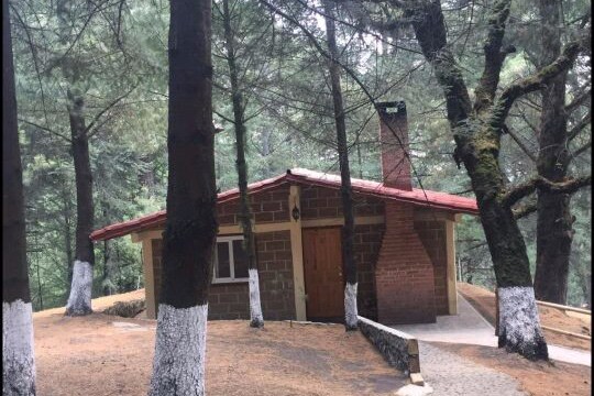 La Malinche,一個被松樹環繞的現代貨櫃。