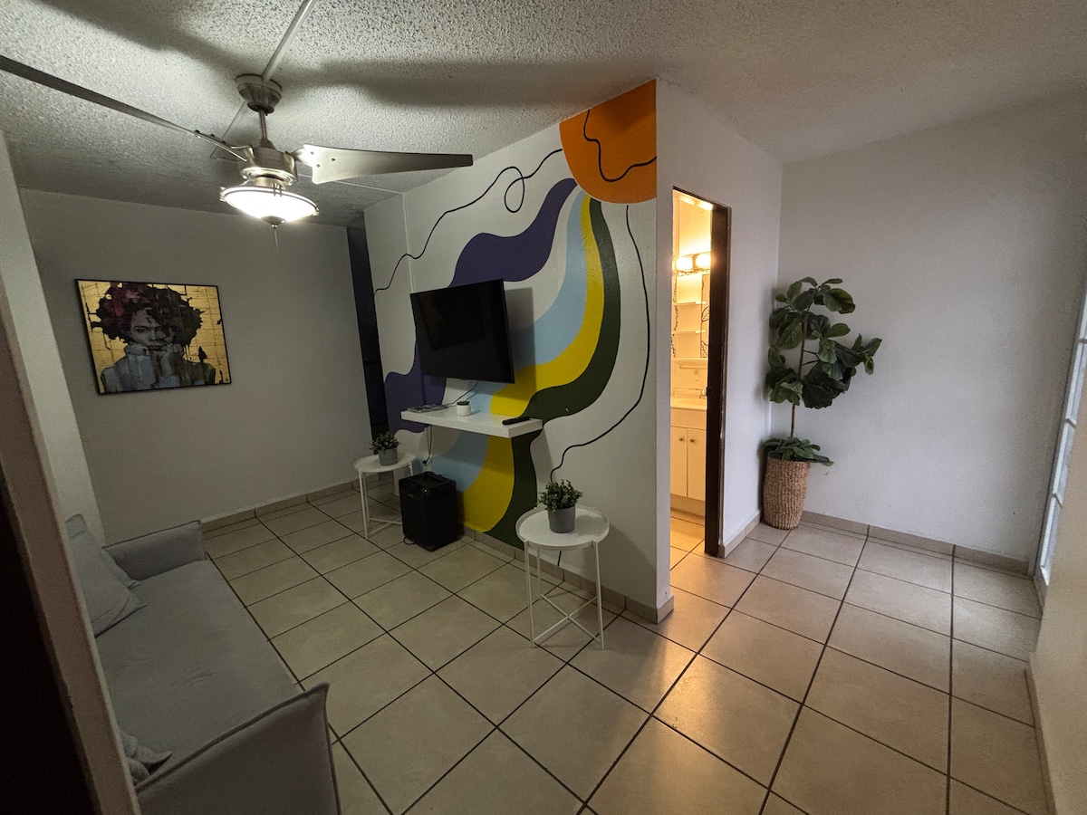 這是一間美麗的公寓,距離3個不同的海灘僅3分鐘路程。是一個非常舒適的地方,滿足您的所有需求。靠近醫院、市場、餐廳、酒吧、保齡球館、電影院、購物中心、農場和公共廣場。非常適合家人和朋友玩得愉快。距離機場和聖胡安約30分鐘路程。