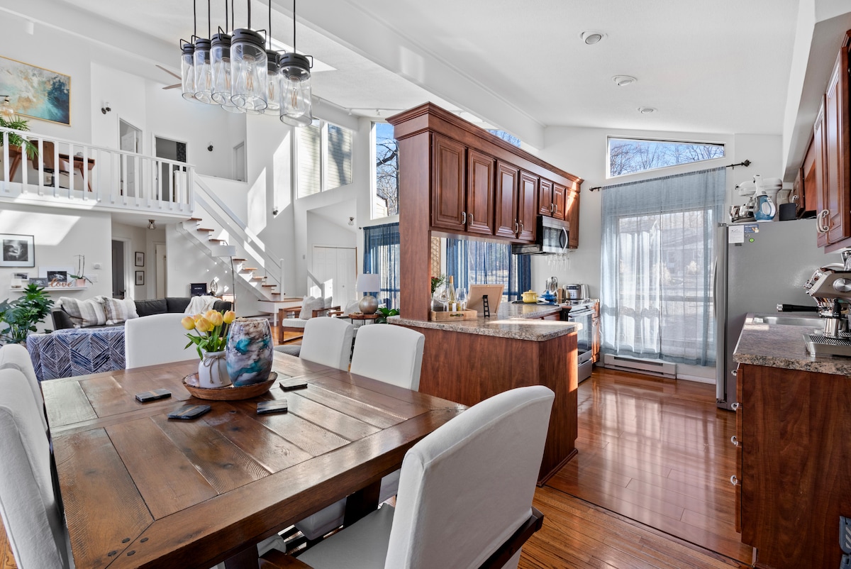 這間通風良好且私密的四季小木屋設有拱頂天花板、客廳壁爐、2間一樓臥室,可輕鬆前往該地區的便利設施。步行即可抵達室內泳池(勞動節至陣亡將士紀念日開放),距離美麗的州立公園僅一條街,該公園有超過2000英畝的步道和沙灘250英畝的湖泊。戶外泳池、海灘、網球場等在陣亡將士紀念日到勞動節期間開放。距離3個滑雪場不到30分鐘路程。