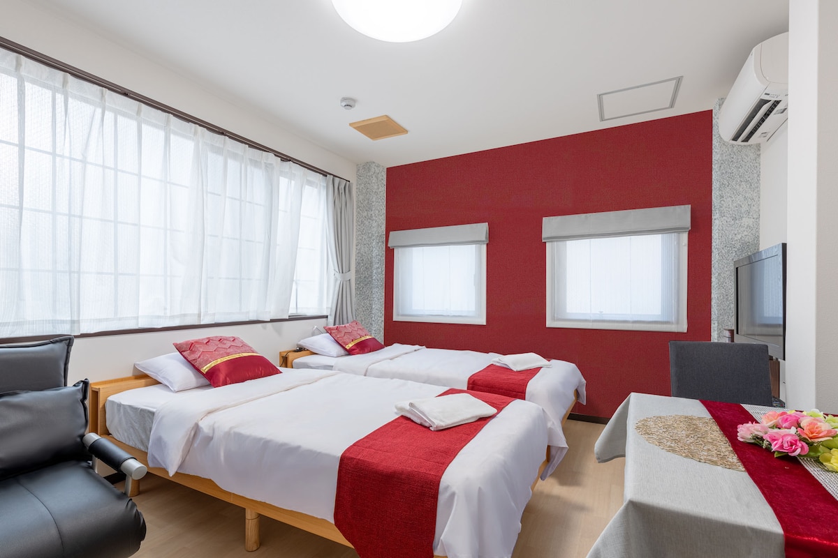 位置: 這套房屋坐落在距离东京晴空塔仅有10分钟步行路程的地方。房屋的周边环境还充满了魅力,您可以在这里深入体验当地文化。 交通: 附近有三个主要车站:曳舟站、押上站和东京晴空塔站。这些车站提供便捷的城市通行,您可以轻松前往东京的各个地方,也可以便捷地抵达热门的旅游景点。 从成田机场或羽田机场抵达,无需换乘,您可以直接抵达离开房子最近的车站。 房屋附近的車站還有直達東京迪士尼樂園的巴士。 住宿: 您入住的房间位于一栋三层公寓的一楼(27㎡)。一楼只有1个客房,完全独立,不必与其他人共享。房间在2023年8月经过全面室内翻新,更换了新的厨房和浴室并重新铺设了墙纸和地板。 床铺: 我们提供2张单人床和1张沙发床,可以容纳最多3位客人。无论是家庭度假还是与朋友的旅行,都能满足您的住宿需求。 设施: 房间内设施齐全,包括高速Wi-Fi回線、洗衣机、电视、冰箱、微波炉、咖啡机、烤面包机、熨斗、吹风机等,确保您的住宿尽可能舒适和便捷。 周边: 這套房屋步行即可抵达东京晴空塔,这是东京最著名的地标之一。周边地区拥有多个购物中心、餐厅和娱乐设施,为您提供深度体验日本文化的机会。