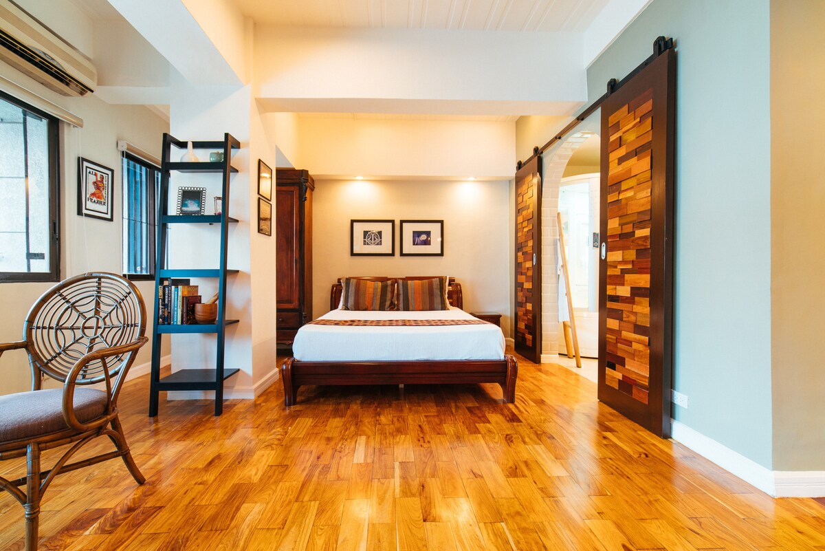Perfectly situated in the heart of the Poblacion, Makati Restaurant and Entertainment District, our unit is located on the 5th floor of a boutique condo building w/ 24 hour security. Our 1br boasts views, a 50s mid-century modern interior and amenities including a 55" tv, Netflix, 300 Mbps, w full kitchen. Walk to nearby bars, casual restaurants, and fine dining. Experience art and culture! The perfect destination for couples, solo adventurers, a business traveler, short trips, and vacation!