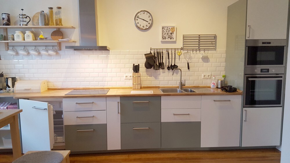 位於獨立房屋上層的大型2臥室公寓現代化-全新黑膠唱片地板。全新現代化、設備齊全的廚房,配有可伸縮的廚房桌子( 4-8座)。 寬敞的臥室和配有沙發、雙人牀1.40 x 2.00公尺和書桌的大客廳。