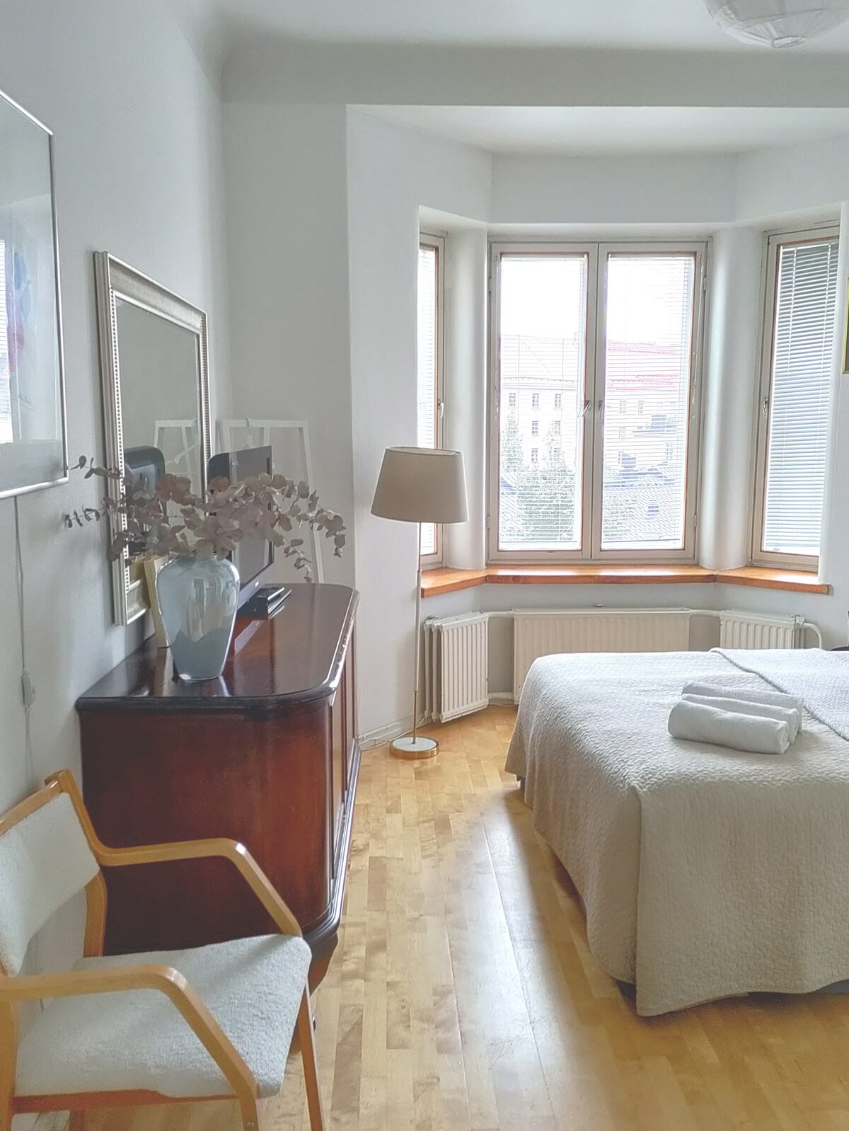 Kompakti ja viehättävä helmi-asunto sijaitsee kolmannessa kerroksessa rauhallisen takapihan puolella, Helsingin Töölön alueella. Liikenneyhteydet ovat erinomaiset kaikkiin suuntiin. Viihtyisässä huoneessa on kahden hengen vuodesohva, oma wc- ja suihkutila, pyykinpesukone sekä minikeittiö. Kaikki palvelut, kuten kaupat, ravintolat ja apteekit, ovat talon ympärillä. Suomen maamerkit, kuten Sibeliuspuisto, Olympiastadion ja Oopperatalo, metsät ja merenrannat ovat vain lyhyen kävelymatkan päässä.