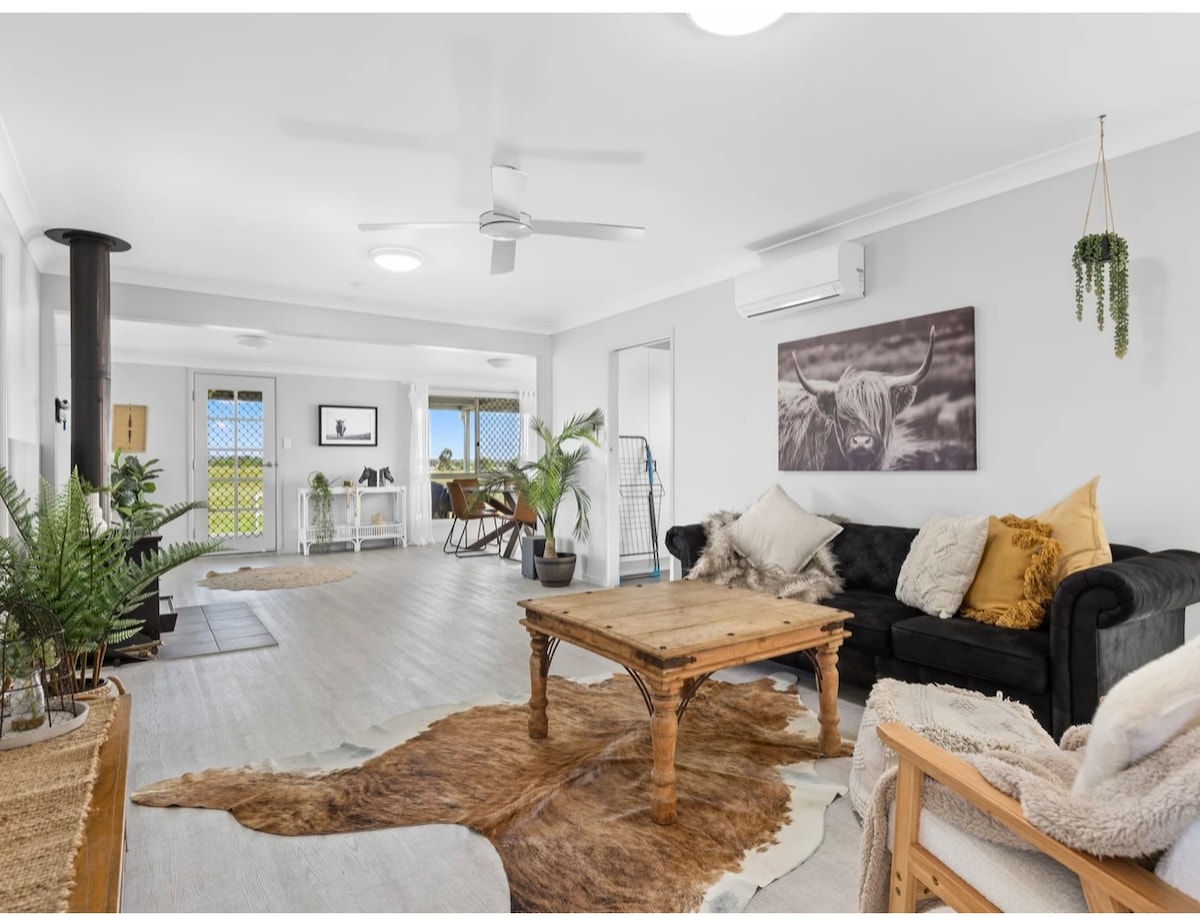 克蘭利!獨立空調住宅,配有私人庭院和陽台,俯瞰家庭泳池。 享受鄉村景觀和花園區域。友好的山羊、鴨子和雞增加了鄉村體驗。 拋光地板、天花板高,自然光線充足,讓它成為一個安靜祥和的住宿地點。 距離Butcher '、' O 'Donnell 'Bakehouse和Wilsonton商店和飯店只有幾分鐘路程。 距離Toowoomba市約8公里。(12分鐘)到Margaret St.的Grand Central。