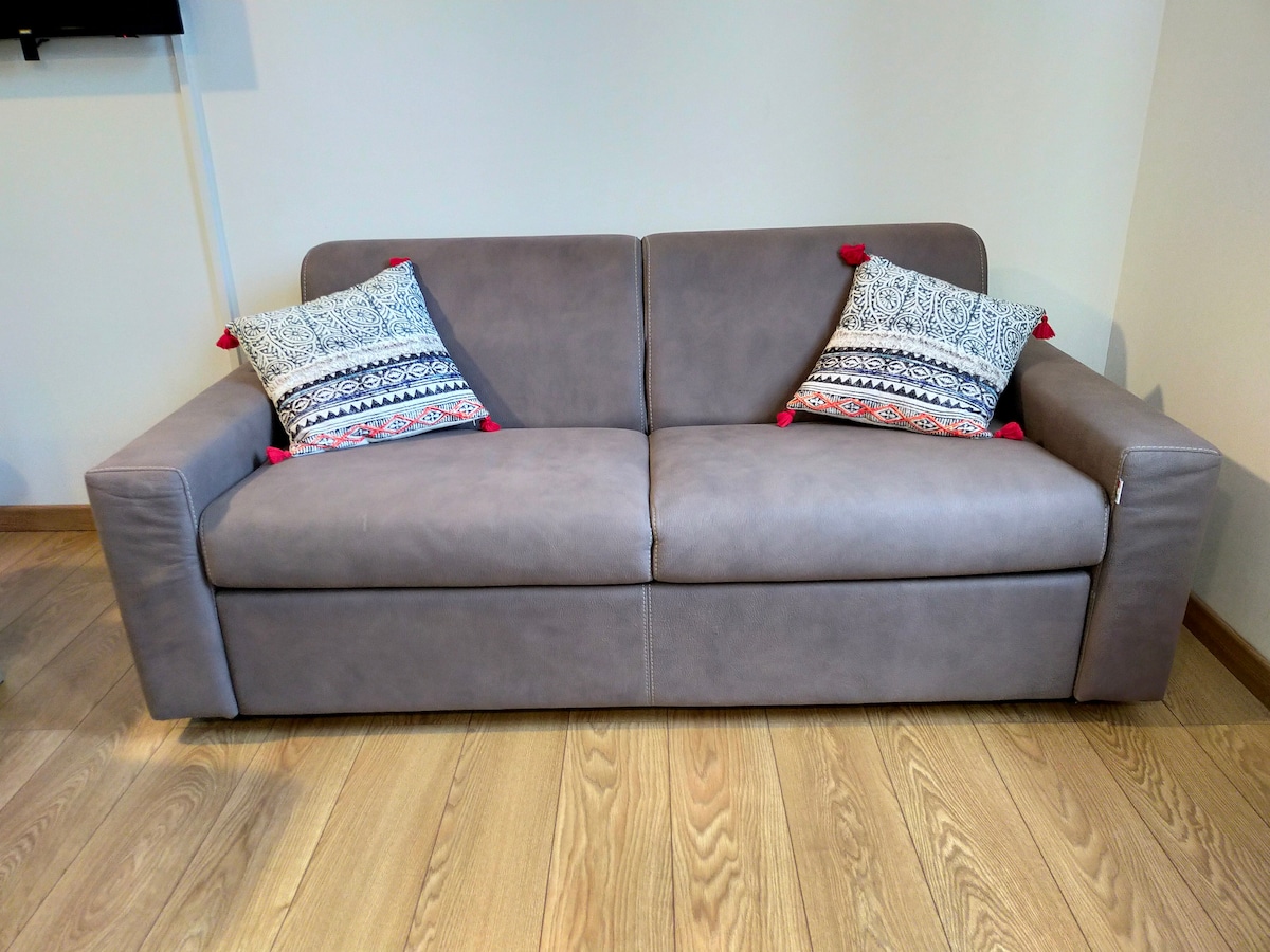 公寓位於18世紀的建築物(位於古羅馬區,是城市最古老的中心),您可以步行參觀城市。 這是一個大型閣樓單間公寓(40 平方公尺),配有雙人床(160x200)、可轉換成單人床或雙人床(160x200)的沙發床、設備齊全的廚房牆和配有洗衣機/烘乾機的大型明亮浴室。 此外:電梯、安全門和可編程暖氣。