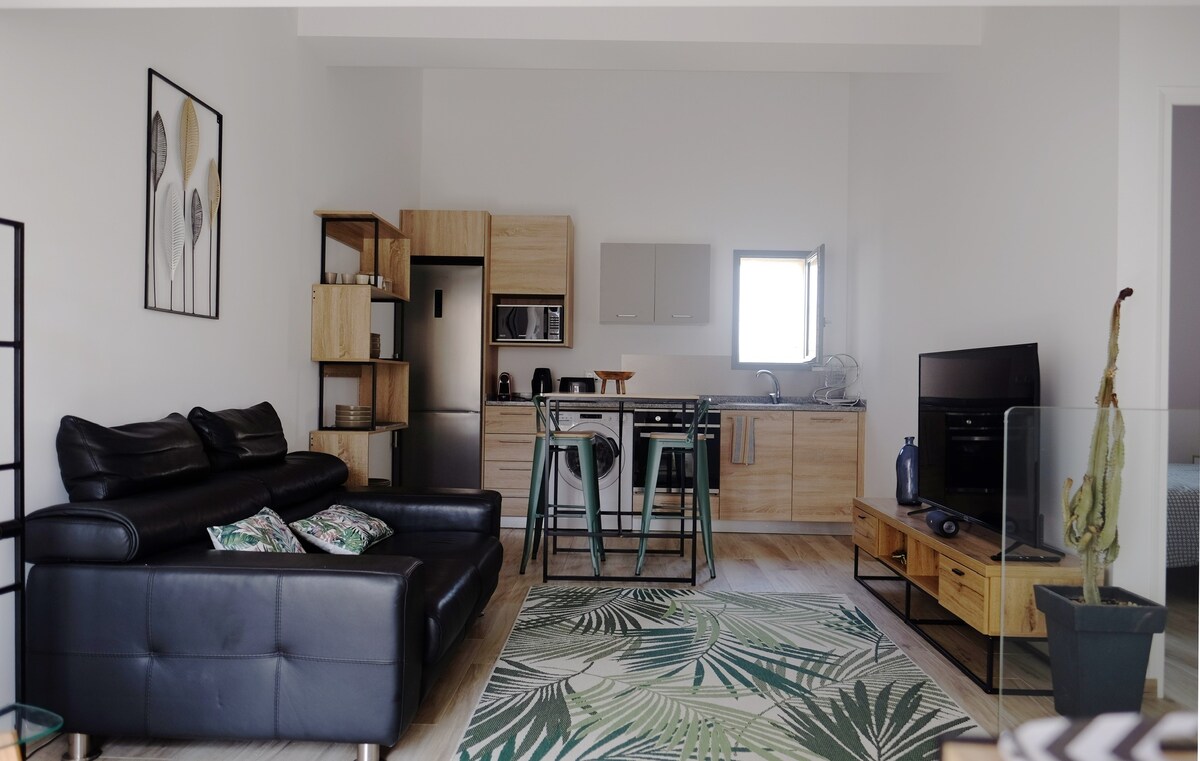 位於 5 樓的翻新住宅(38 平方公尺 + 10 平方公尺露臺)- 2 部電梯 - 現場私人停車位(高度 1.90 公尺)- 所有舒適設施 - 從有蓋露臺可俯瞰海景 - 沒有對面 - 可直接前往海灘 - 1 間雙人床臥室 140 - 1 間睡眠區 140 - 空調 - 全新設備齊全的廚房 4 燃氣感應爐、旋轉烤箱 - 微波爐 - 洗碗機、洗衣機 - 連線電視 - 提供床單、毛巾、光纖 WiFi -