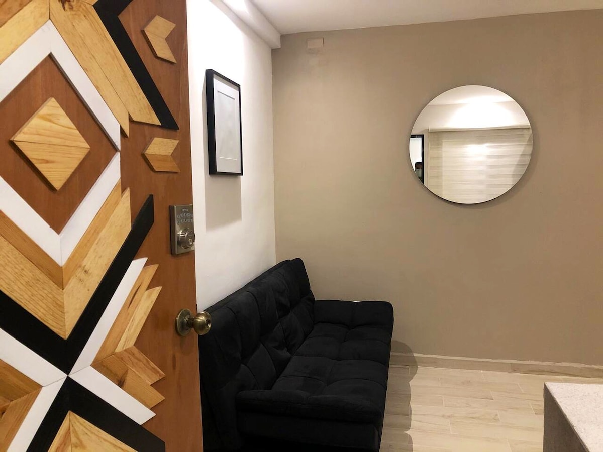 ⚠️ Nuestro Airbnb es un Departamento PRIVADO con UNA RECÁMARA con MiniSplit para UNA PAREJA cuenta con: -Cine en habitación y Alexa con Spotify Premium -TV 55' en sala con Chromecast y PS4 🎮 -🎬 Netflix, HBO, Disney+, ClaroVideo, por nuestra cuenta. -Estacionamiento un cajón exclusivo NO TECHADO 🏁 -NO FACTURAMOS -Aeropuerto a 5 min | Central de Autobuses a 5 min -Hospitales a 7 min -Plazas Comerciales, GYM y Restaurantes 🍴 a 3 min -Oxxo y Farmacia en esquina