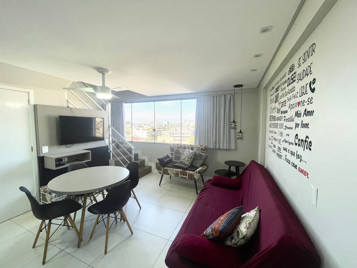 Dunas Flat大樓的公寓,包括每日40分鐘的清潔服務、桑拿、夏季溫水泳池、健身房、遊樂場、燒烤區、網路、智慧電視、Netflix、雙人床、沙發床、遊戲室、電視室、廚房(爐子、冰箱、咖啡機、微波爐、空氣炸鍋 8樓海景和山景距離海邊步行4分鐘,就在市中心。 附近的Barzinhos、餐廳、超市、自助餐廳和Cine 3D 我不提供寢具 我不提供毛巾 Aceita寵物無車庫