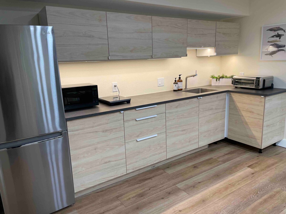 逃離寧靜的芒果客用套房,這是您的私人花園景觀綠洲,擁有自己的客用入口。 在310平方英尺的現代化空間中放鬆身心,配有標準雙人記憶泡沫牀、雙人沙發、用餐區域、配備全尺寸冰箱的迷你小廚房、室內空調和暖氣以及遮光窗簾。 在專用的露臺區域放鬆身心,配有兩張搖椅,可欣賞東部的迷人景色。 享受免費停車,輕鬆前往德爾馬爾、托里松樹海灘/步道、加州大學聖地牙哥分校,並快速連接I-5高速公路。